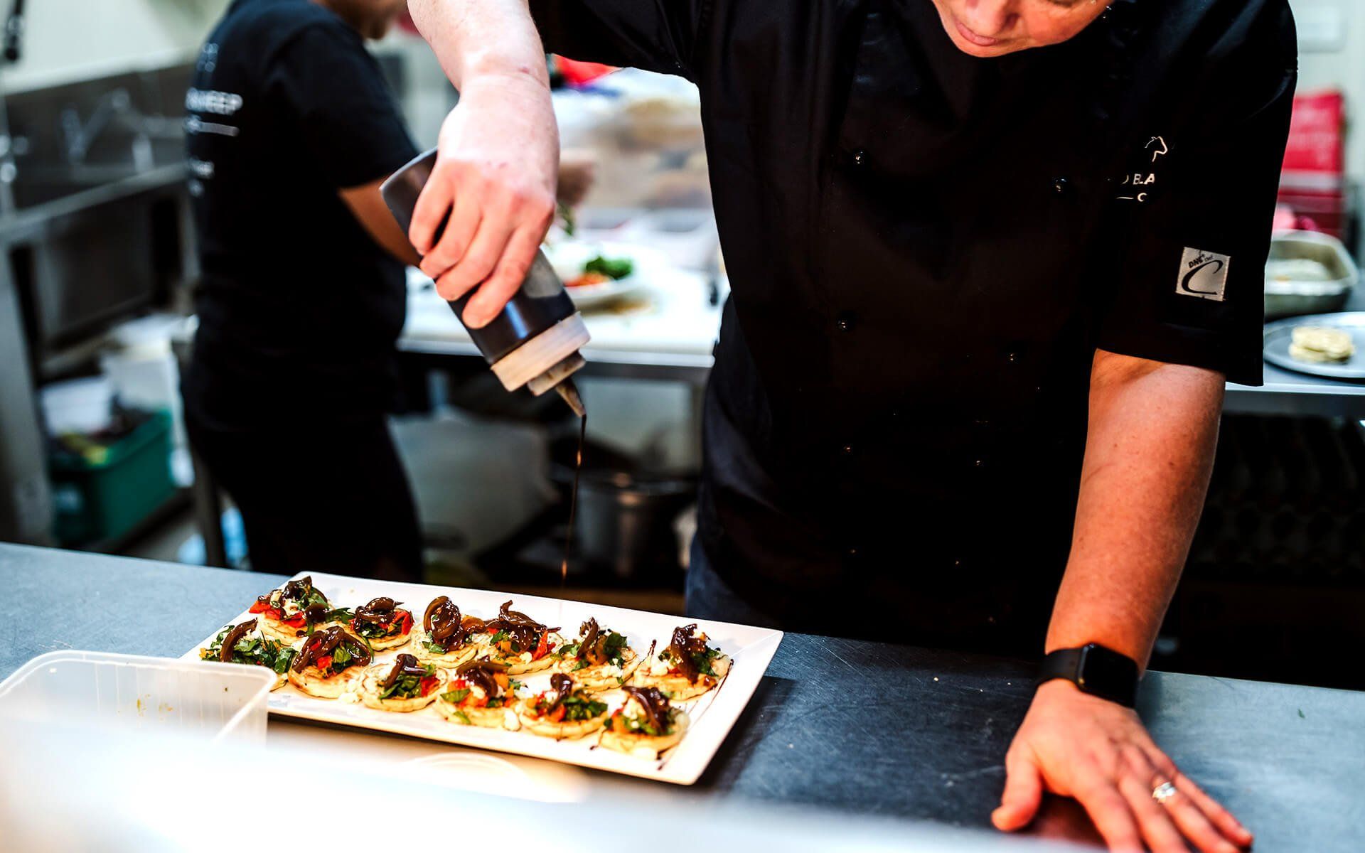 Off-site catering fees apply for events where the food is cooked on site, which will differ in cost depending on the location, size, duration and requirements of the event. A minimum of $1,000 food order for off-site events.
